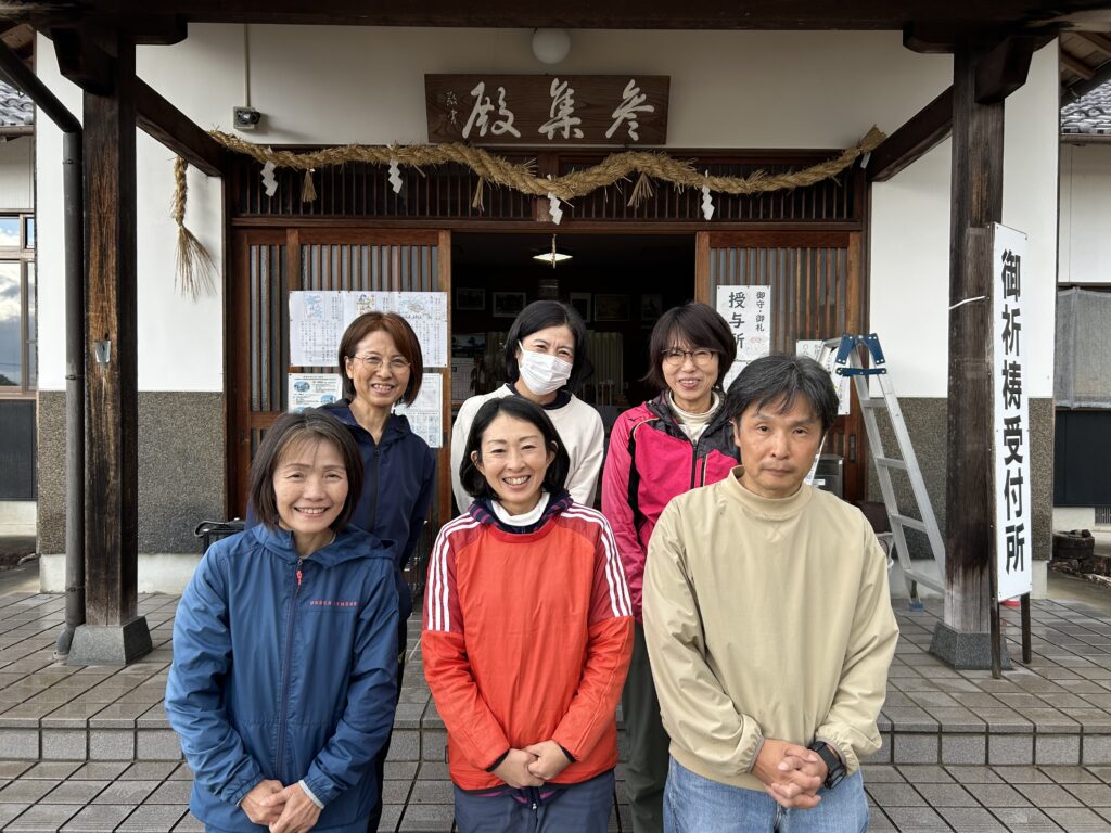 健康づくりに神社で一緒に掃除をして