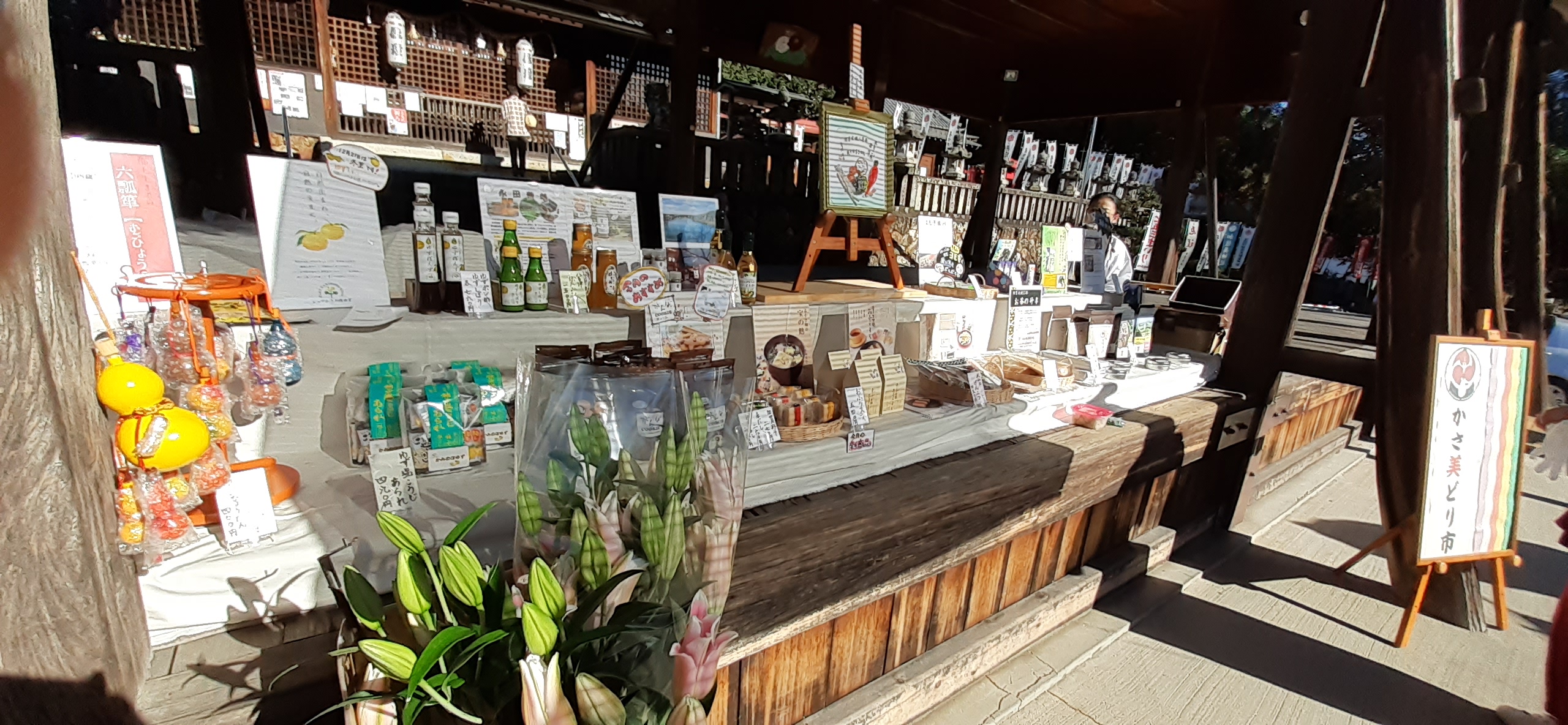 日に日に秋が深まり 朝夕の冷えこみが増してきましたが おだやかな小春日和の中 加佐美神社御拝殿にて『かさ美どり市…